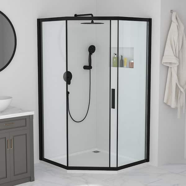 42 in. W x 76 in. H Interior Sliding Framed Glass Shower Door/Enclosure in Black with Handle