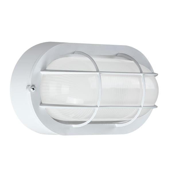 8.5 in. x 5 in. 1-Light Oval Matte White LED Bulkhead Outdoor Wall Sconce Light Fixture With Frosted Glass Shade