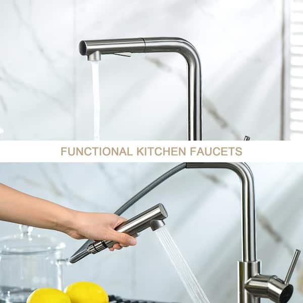 Single Handle 2-Sprayer Pull Out Kitchen Sink Faucet in Brushed Nickel