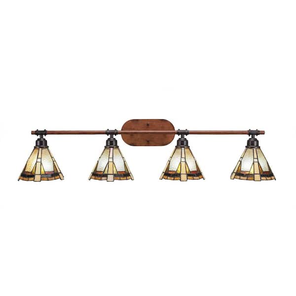 London 39.5 in. 4-Light Painted Wood-Look Metal and Dark Granite Vanity Light