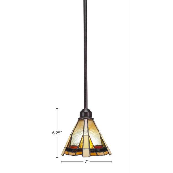 London 60-Watt 1-Light Wood Look Metal/Brown Light Mini Pendant with 7 in. Zion Art Glass Shade, No Bulb Included