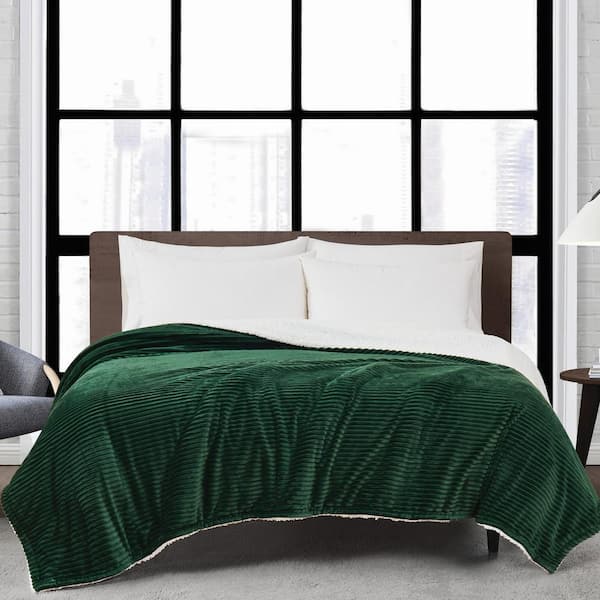 Large Corduroy Polyester Green Twin Blanket