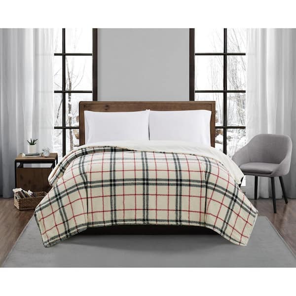 Popcorn Plaid Plush Black/Red Full/Queen Blanket