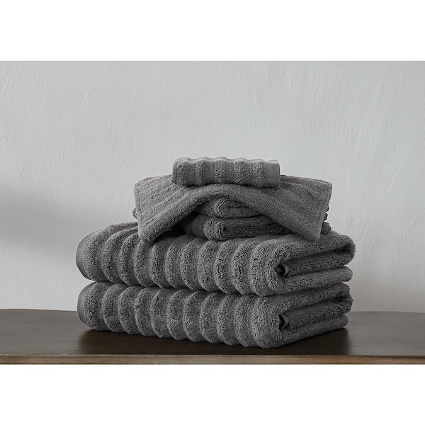 Zero Twist 6-Piece Grey Solid Cotton Towel Set