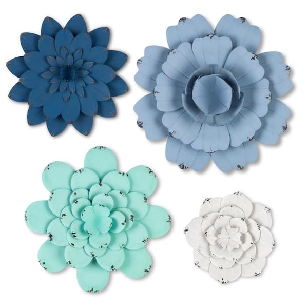 Blue Metal Flowers (Set of 4)