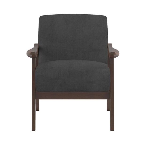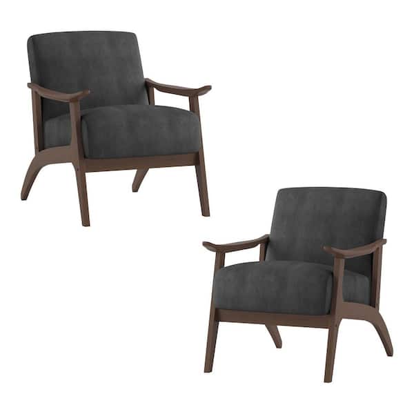 Lonita Dark Gray Velvet Upholstered Solid Wood Walnut Finish Accent Chair(Set of 2)