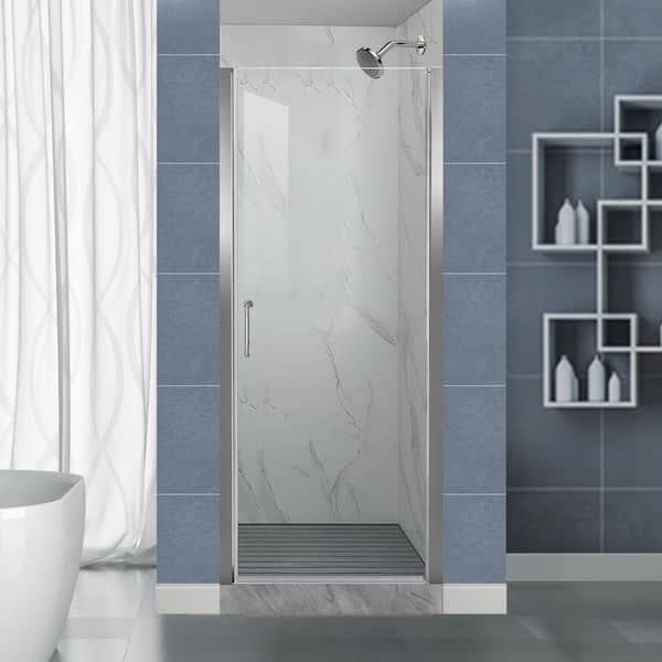 24-25.9 in. W x 72 in. H Frameless Pivot Shower Doors with 1/4 in. Thick Clear Tempered Glass in a Chorme Finish