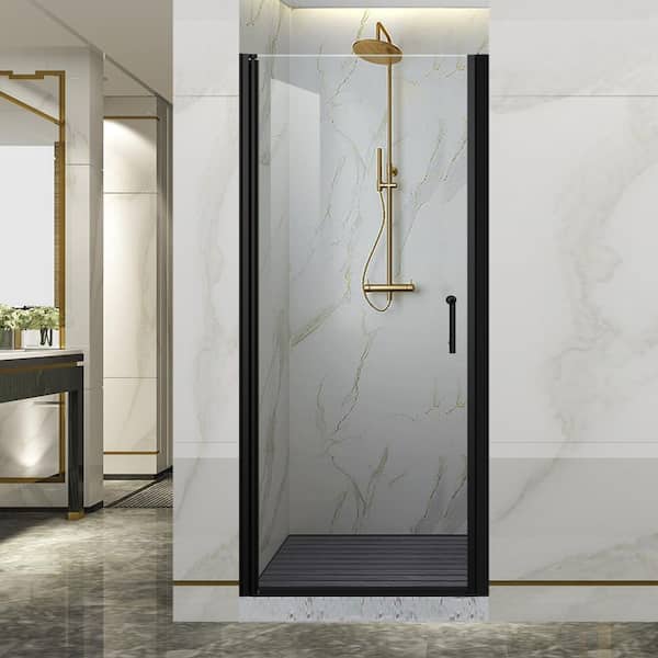 28-29.9 in. W x 72 in. H Matte Black Frameless Pivot Shower Door with 1/4 in. Thick Clear Tempered Glass