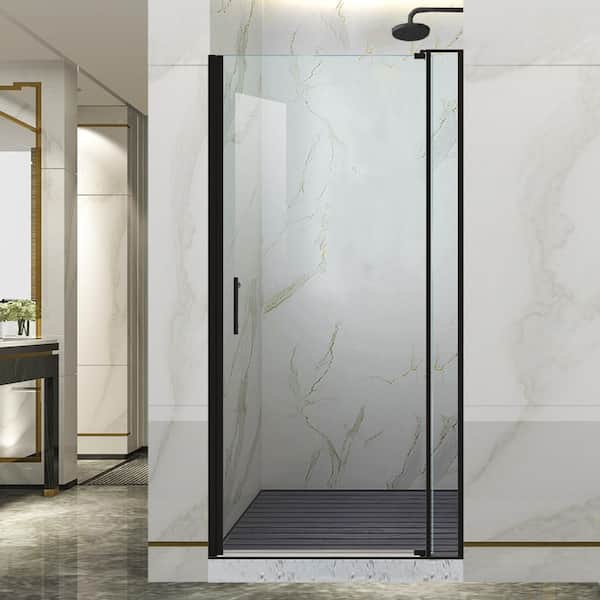 28-32 in. W x 72 in. H Pivot Swing Semi-Frameless Shower Door in Matte Black with Clear SGCC Tempered Glass
