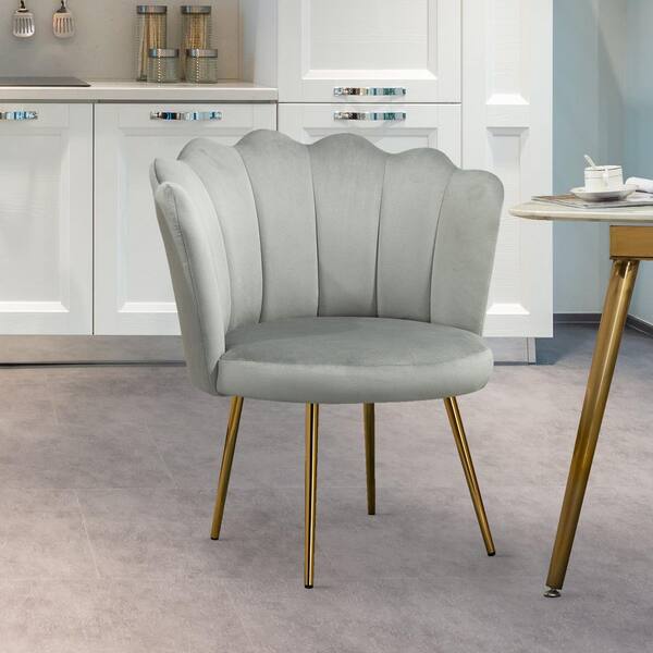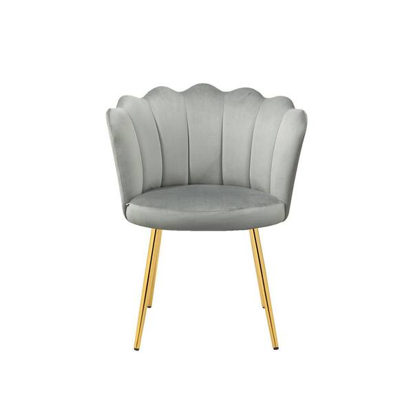 Lorea Gray Velvet Side Chair With Golden Metal Leg