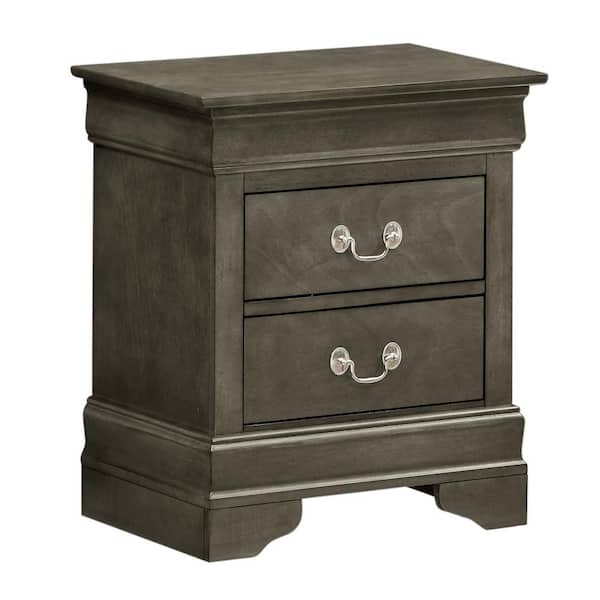Louis Philippe 2-Drawer Gray Nightstand (24 in. H X 21 in. W X 16 in. D)