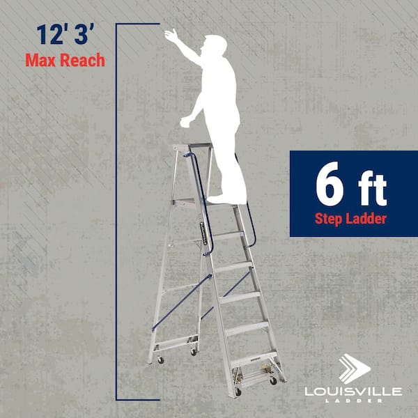 6 ft. Aluminum Mobile Platform Step Ladder, 12.25 ft. Reach Height, ANSI, Type IA, 300 lbs. Load Capacity