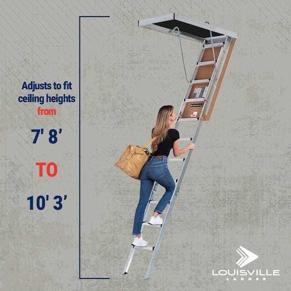7.8 ft.-10.3 ft. Ceiling Height Aluminum Attic Ladder (25.5 in. x 54 in. Rough Opening) 375 lbs. Type IAA Load Capacity