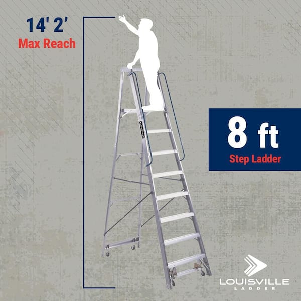 8 ft. Aluminum Mobile Platform Step Ladder, 14.17 ft. Reach Height, ANSI, Type IA, 300 lbs. Load Capacity