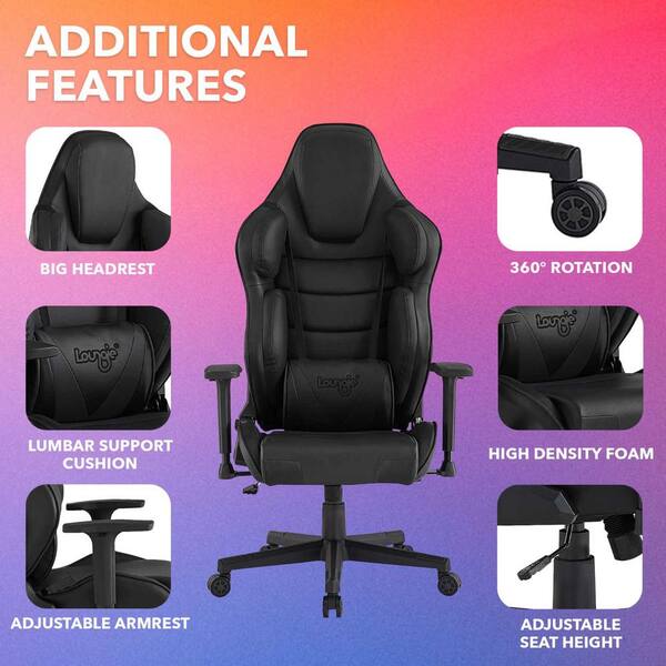 Viraj Black Faux Leather Game Chair Swivel, Adjustable Back Angle, Seat Height and Armrest