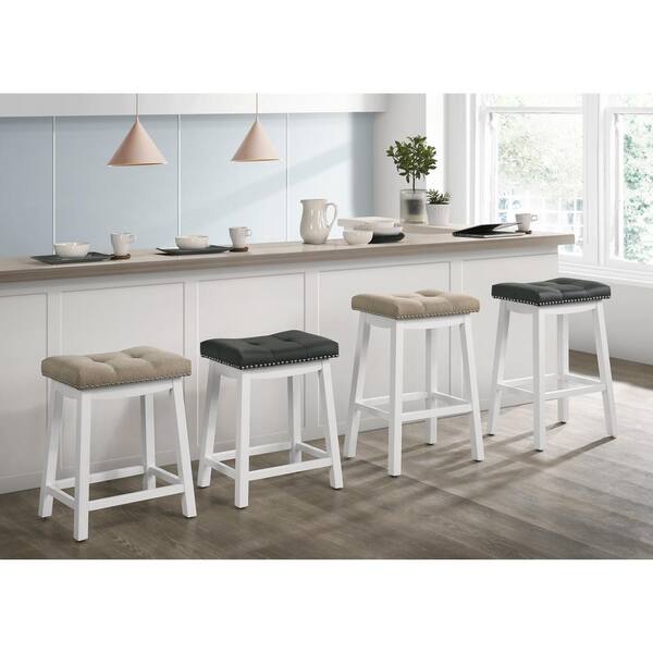 Barstow 29 in. White Bar Stools with Beige/Tan fabric cushion (Set of 2)