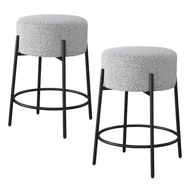 Danica 29 in. Black Backless Metal Bar Stool with Gray Fabric Upholstered Seat (Set of 2)