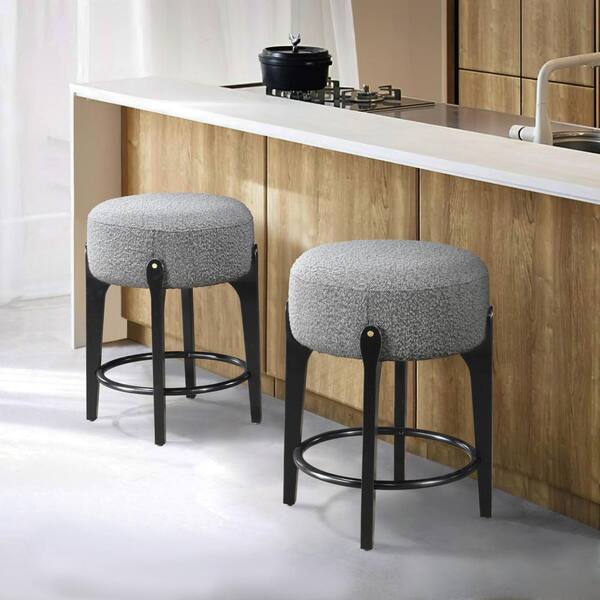 Ellie 24 in. Black Backless Wood Counter Stools with Gray Boucle Fabric Seat Set of 2