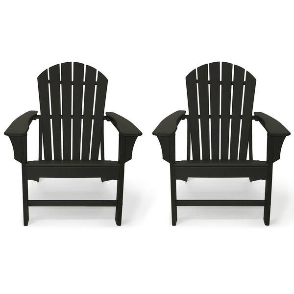 Hampton Black Patio Plastic Adirondack Chair (2-Pack)