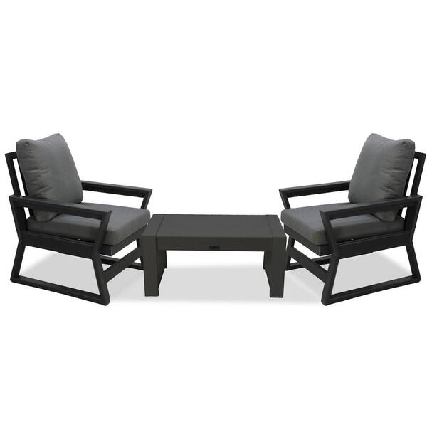 Malibu Gray 3-Piece Plastic Deep Seating Set with Gray Cushions