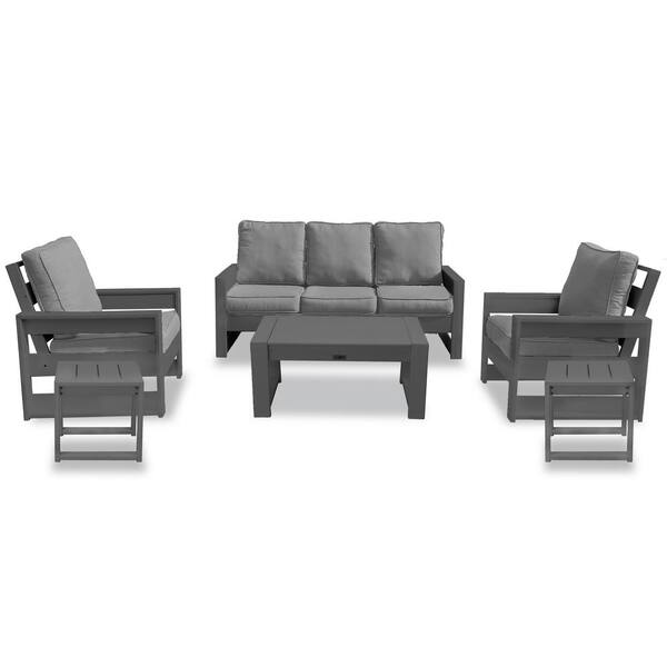 Pacifica Gray 6-Piece Plastic Patio Conversation Deep Seating Set with Gray Cushions