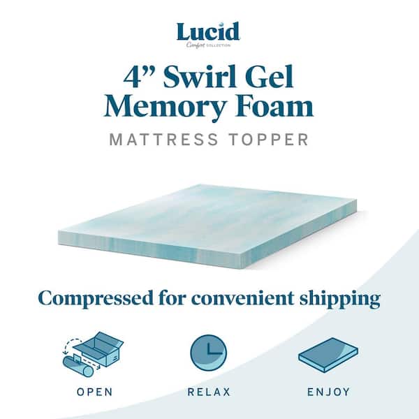 • Swirls of gel in this 4-inch Twin mattress topper keeps you cool