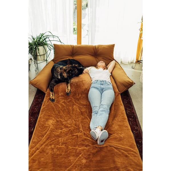 Drift Series Extra Large Cognac Canvas 3-in-1 Bolster Dog Bed with Attached Roll-Out Blanket