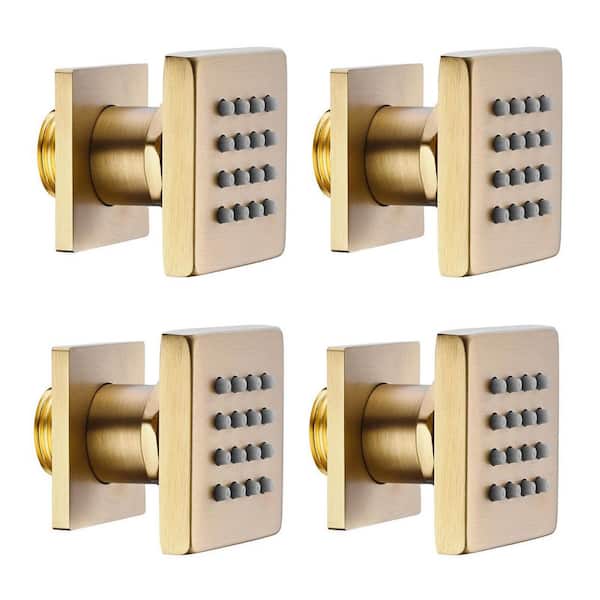 1.96 in. Square Wall Mount 1-Spray Body Jet in Brushed Gold with Spray Jets-Flow Control 4-Packs