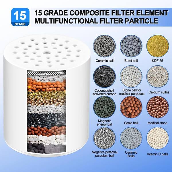 15-Stage Shower Filter Replacement Water Filter Cartridge with Vitamin C for Hard Water (4-Pack)