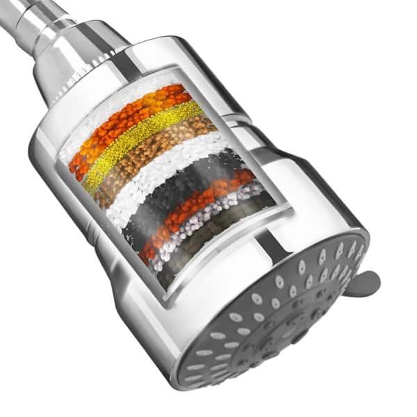 3-Spray Patterns with 1.8 GPM 3.8 in. Wall Mount Fixed Shower Head with 15-Stage Hard Water Filter Cartridge in Silver
