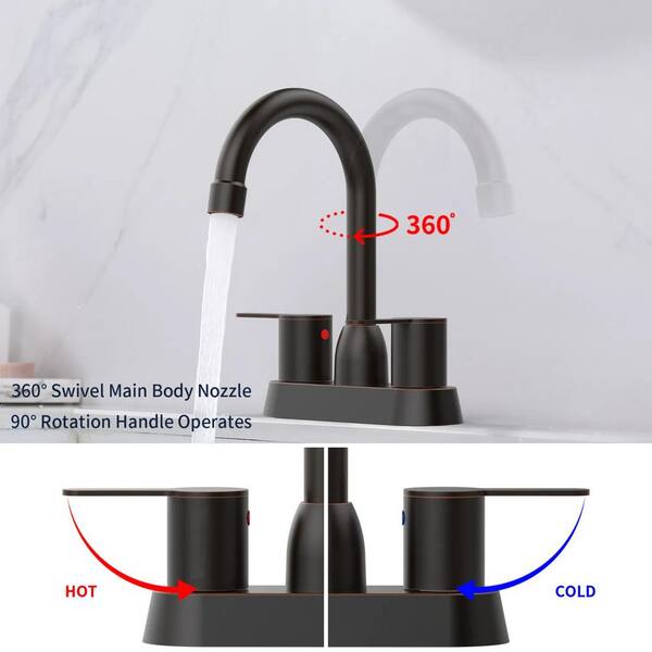 4 in. Double Handle Bathroom Faucet with Solid Brass Construction, Easy Installation for 2/3 Hole in Oil Rubbed Bronze
