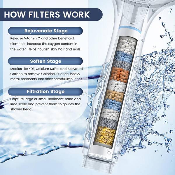 7-Spray Wall Mount Handheld Shower Head GPM with Filters in Black and Chrome