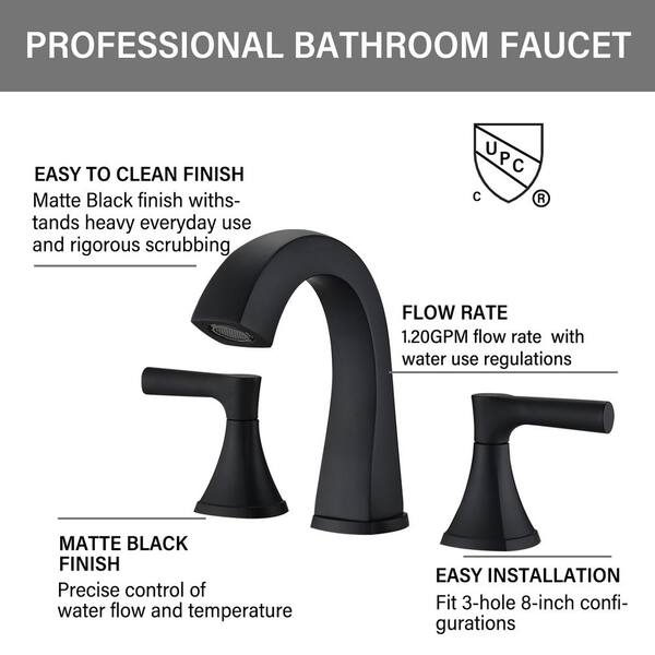 8 in. Widespread Double Handle Bathroom Faucet in Matte Black
