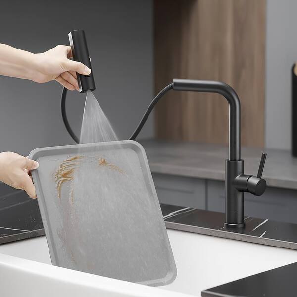 Black 14 in. Pull Out Sprayer Kitchen Faucet in Stainless Steel with Fixed