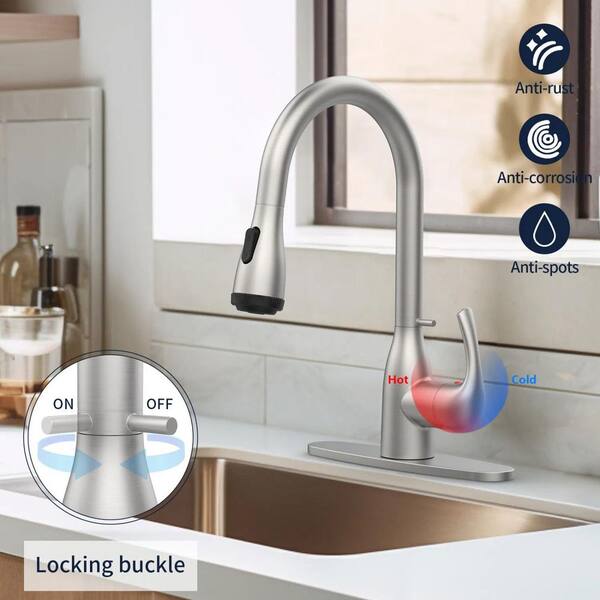 Brushed Nickel 15.74 in. H Pull Down Sprayer Kitchen Faucet with 4 Modes, Locking Buckle, 360° Swivel and Easy Install