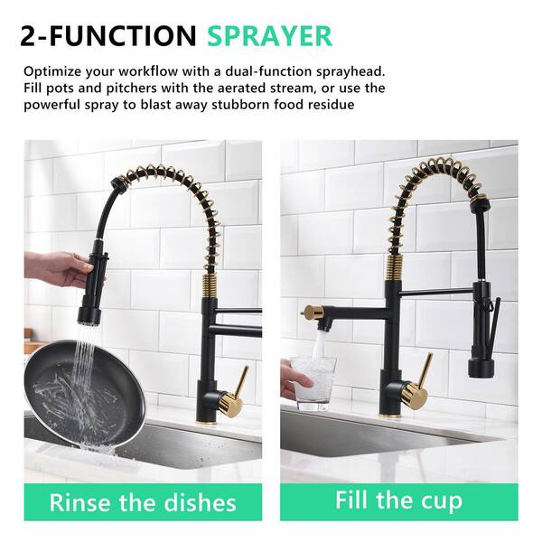 Commercial Single Handle Pull Down Sprayer Kitchen Faucet with Pull Out Spray Wand Pre Rinse High-Arc Brass in Black