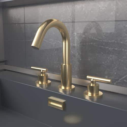 Double Handle Widespread Bathroom Sink Faucet with High-Arc Swivel Spout and Pop-Up Drain in Brushed Gold