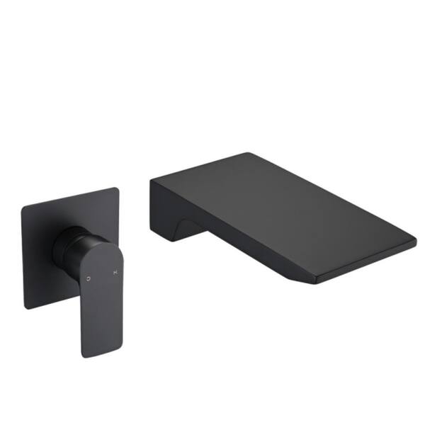 Modern Style Single Handle Wall Mounted Double Hole Bathroom Bathtub Faucet in Matte Black