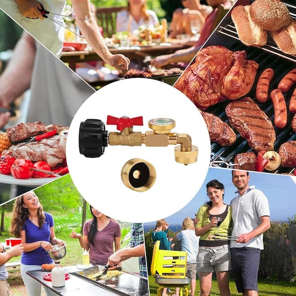 Propane Refill Adapter with Valve and Gauge for 1lb Bottles from 20lb Tank Fits QCC1 Type 1 Connector Durable Brass