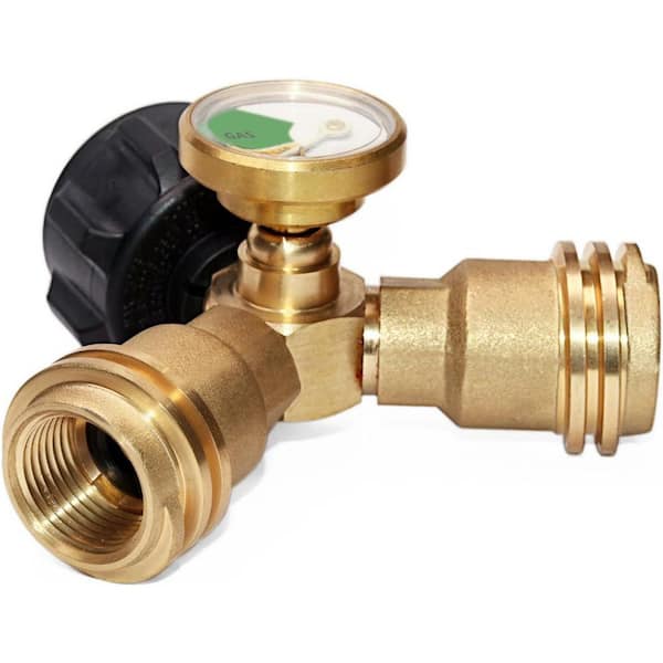 Propane Splitter Adapter with Gauge 2 Way LP Gas Tee Connector for 20lb Tank BBQ Grills Camping Stoves Heaters