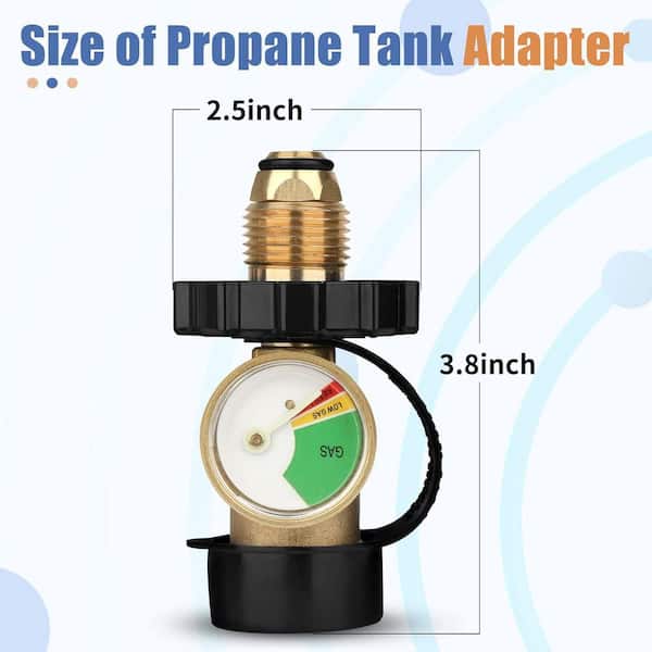 Propane Tank Adapter with Luminous Dial Gauge Converts POL LP to QCC1 Type 1 for 5-100 lb Tanks BBQ Grill Heater 2 Pack