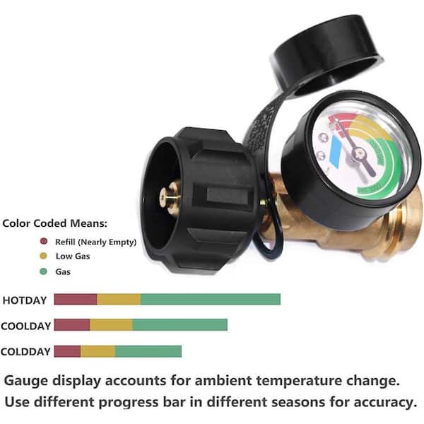 Propane Tank Gauge Level Indicator LP Gas Pressure Meter Color Coded for BBQ Grill RV Heater Appliances Black