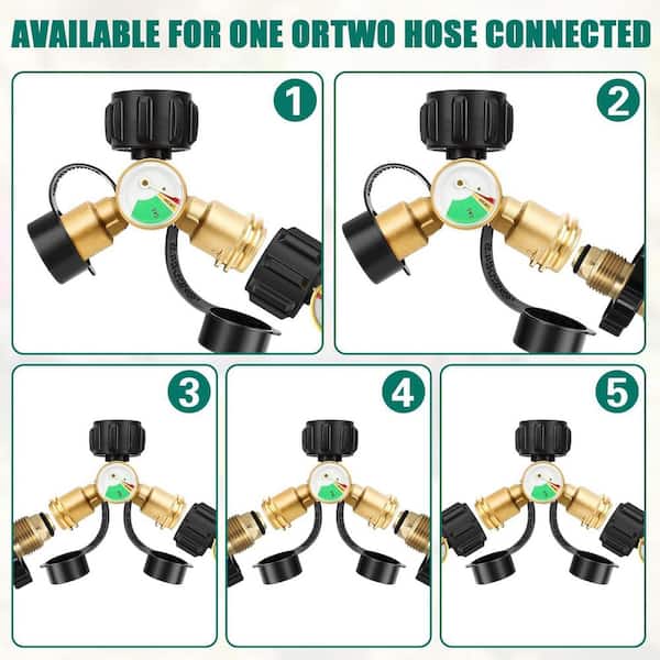 Propane Tank Splitter with Gauge 2 Way Y Adapter Shut Off Valve for Camping Stoves Heaters BBQ Grills Gas Burners