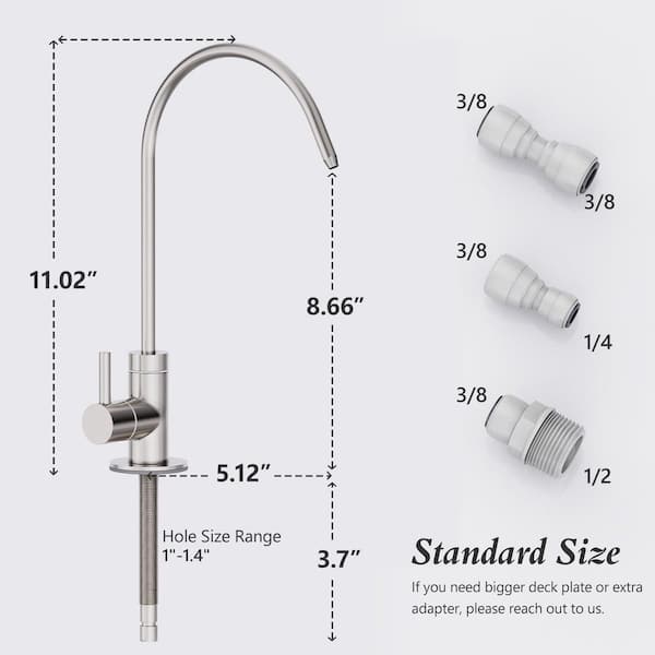 Single Handle Beverage Faucet with 360 Swivel Handle Non Air Gap for Water Filtration System in Brushed Nickel Finish