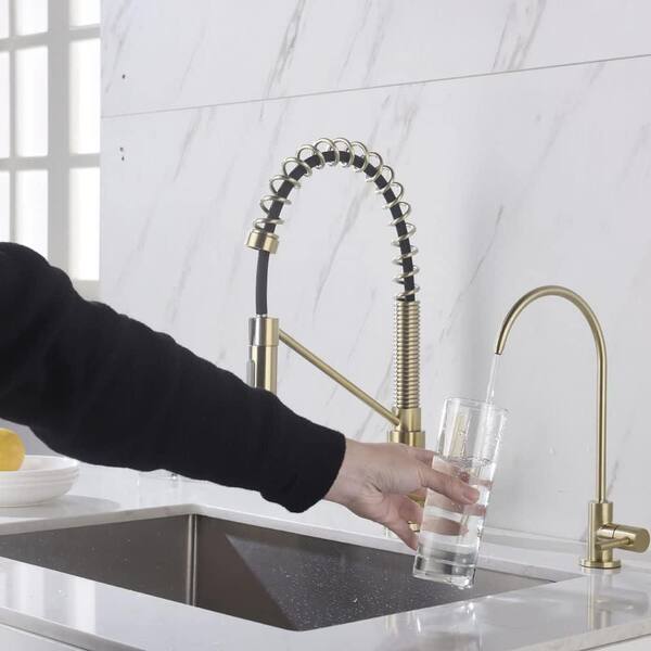 Single Handle Beverage Faucet with 360° Swivel Spout Ceramic Disc for Pure Water Filter in Brushed Stainless Steel Gold