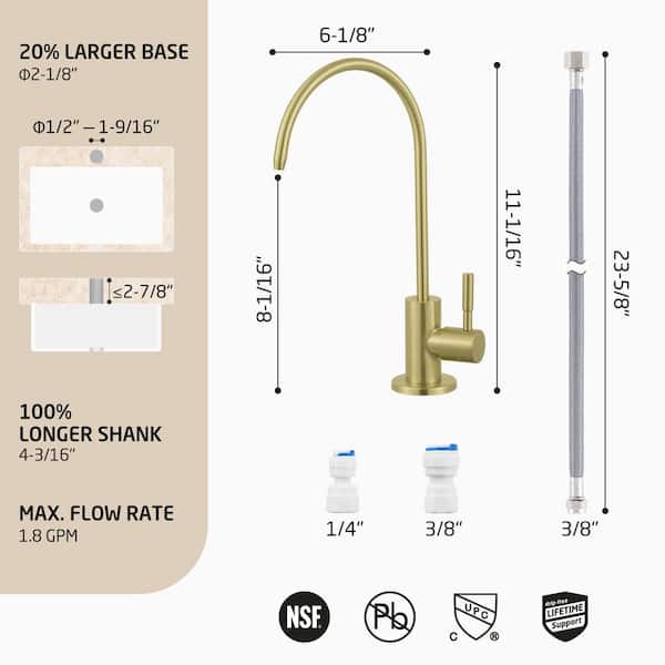 Single Handle Beverage Faucet with 360° Swivel Spout and Ceramic Disc Cartridge in Brushed Gold Stainless Steel