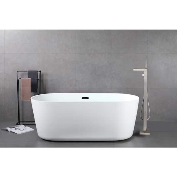 Single-Handle Freestanding Tub Faucet Floor Mounted with Hand Shower in Brushed Nickel