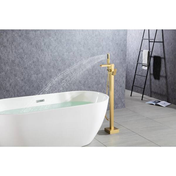 Single-Handle Freestanding Tub Faucet Floor Mounted with Hand Shower in Gold