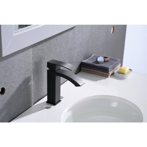 Single Handle Single Hole Bathroom Faucet Waterfall Spout Sink Faucet with Pop-Up Drain and Overflow in Matte Black