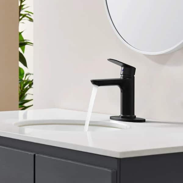 Single Handle Single Hole Bathroom Faucet with 4 in. Deck Plate, 1.5 GPM and Water-Saving Aerator in Matte Black